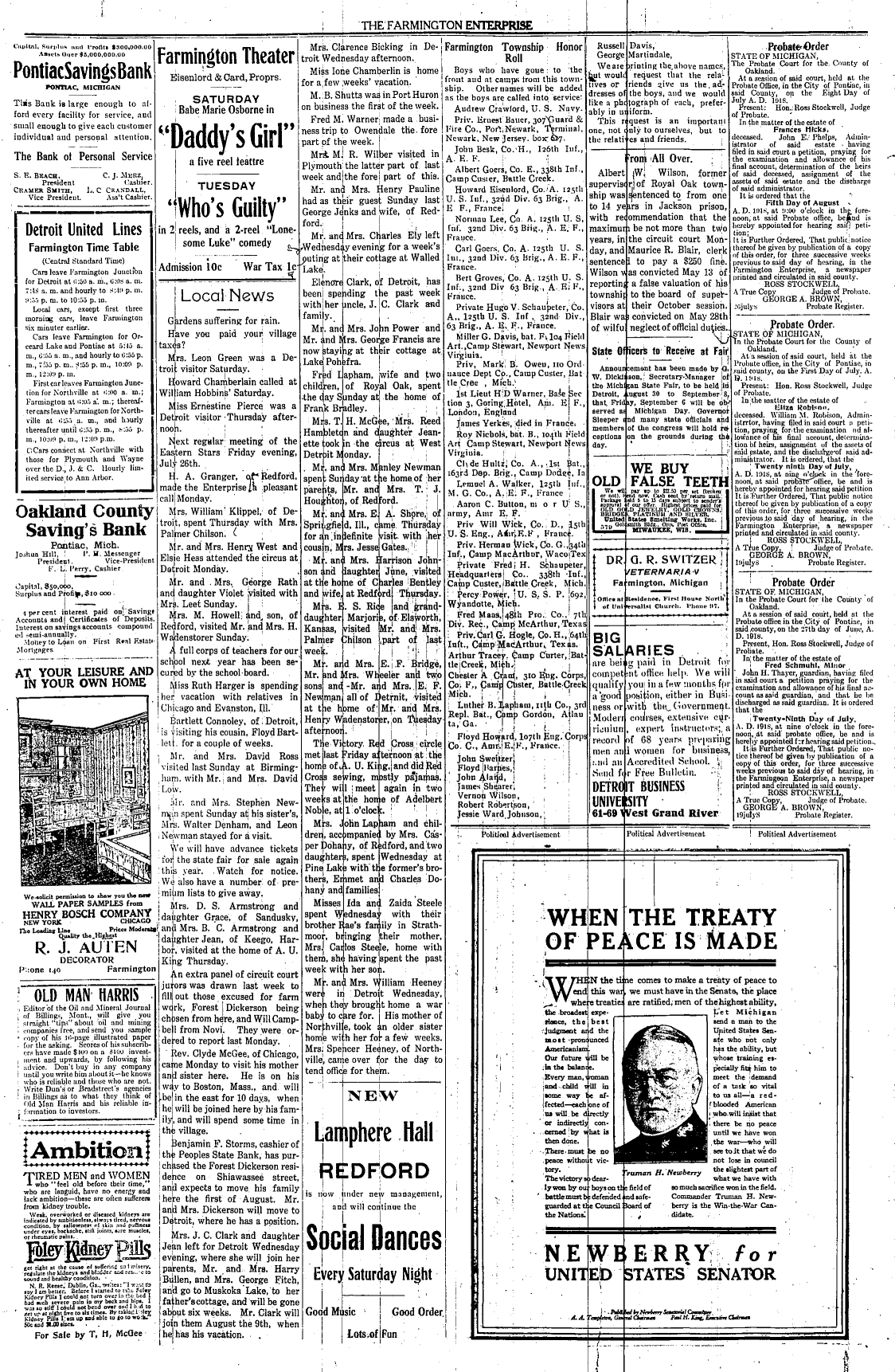 Farmington Observer et al, July 19, 1918.
