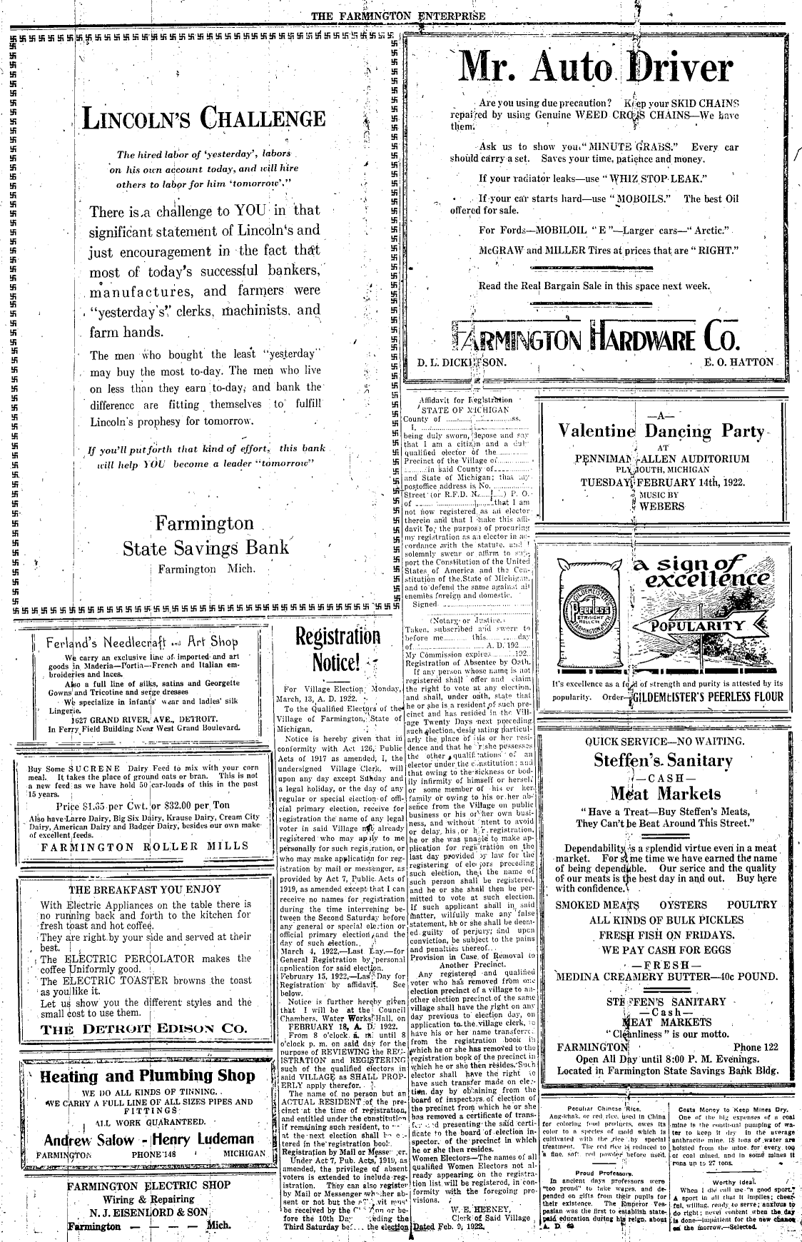 Farmington Observer et al, February 10, 1922.
