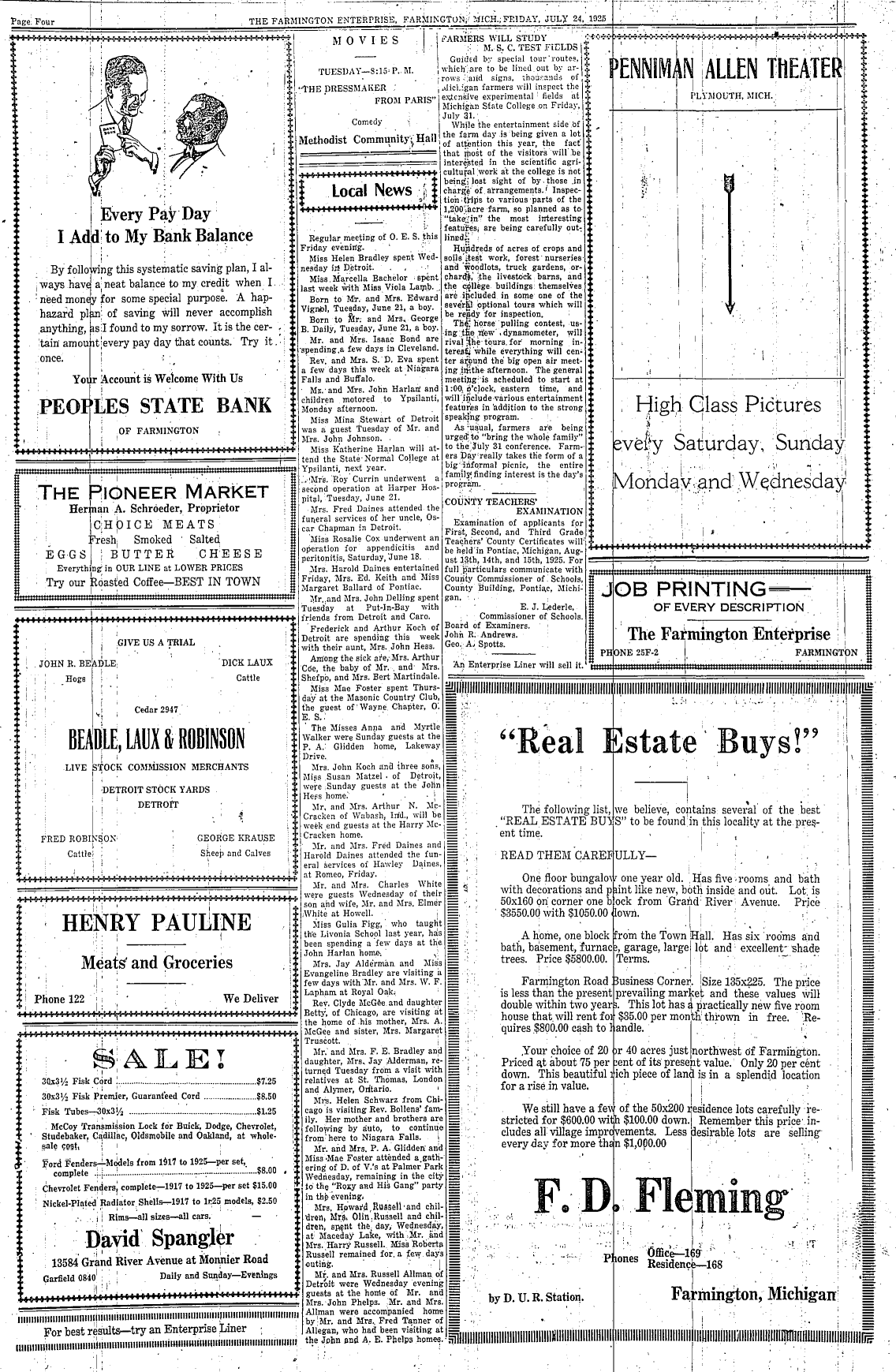 Farmington Observer et al, July 24, 1925.