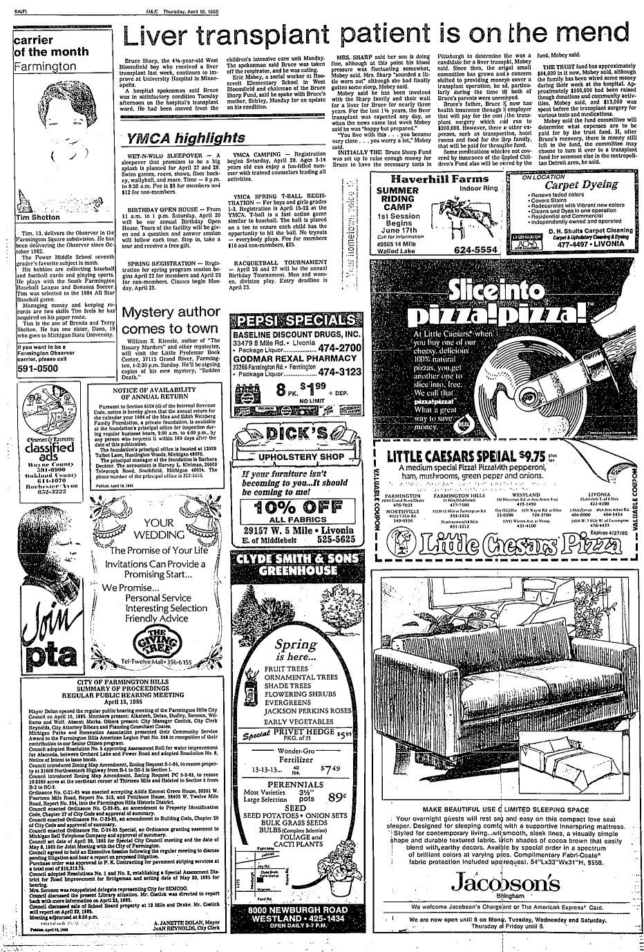 Farmington Observer et al, April 18, 1985.