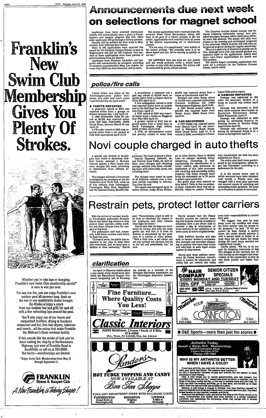 Farmington Observer et al, April 25, 1988.