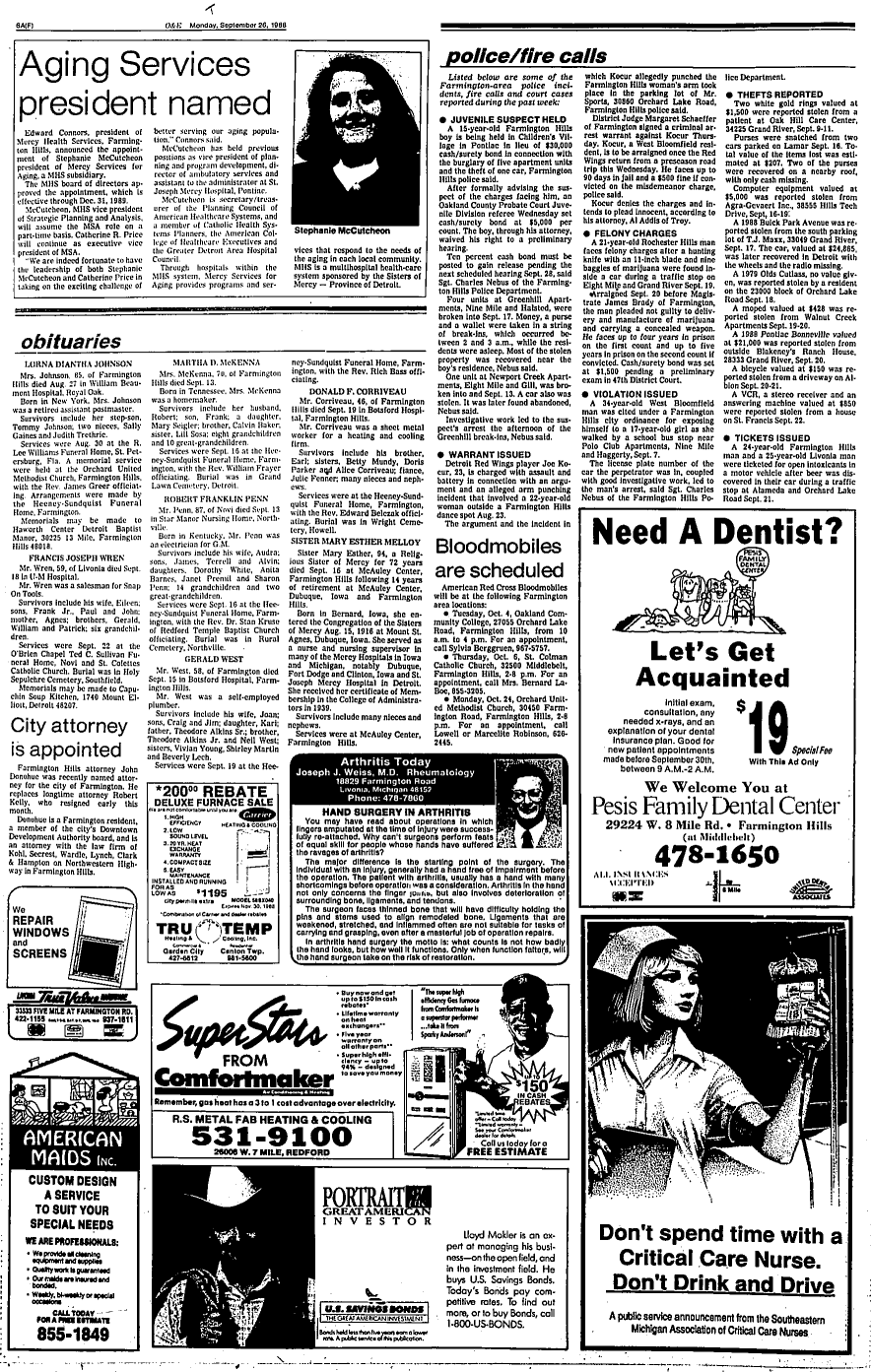 Farmington Observer et al, September 26, 1988.
