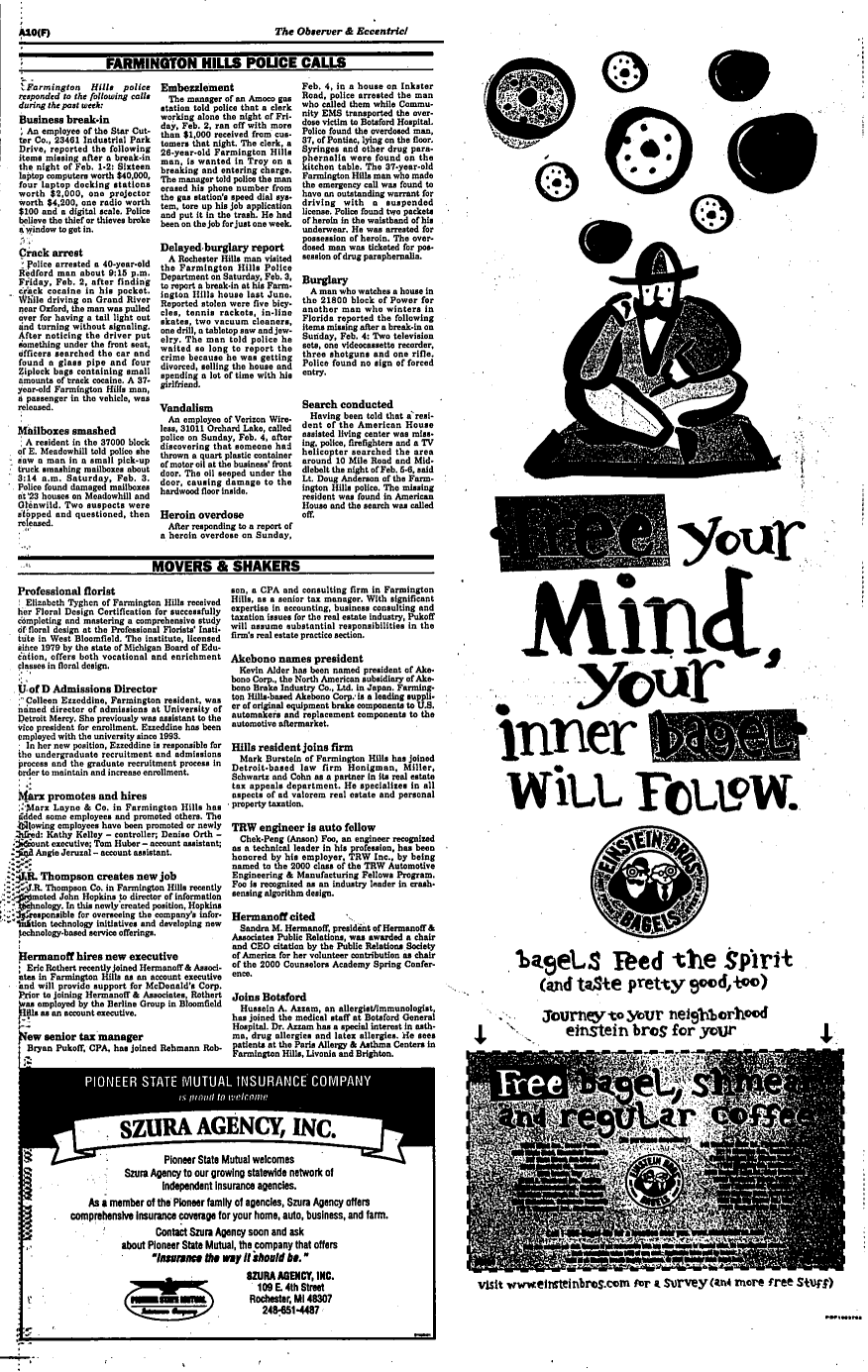 Farmington Observer et al, February 08, 2001.