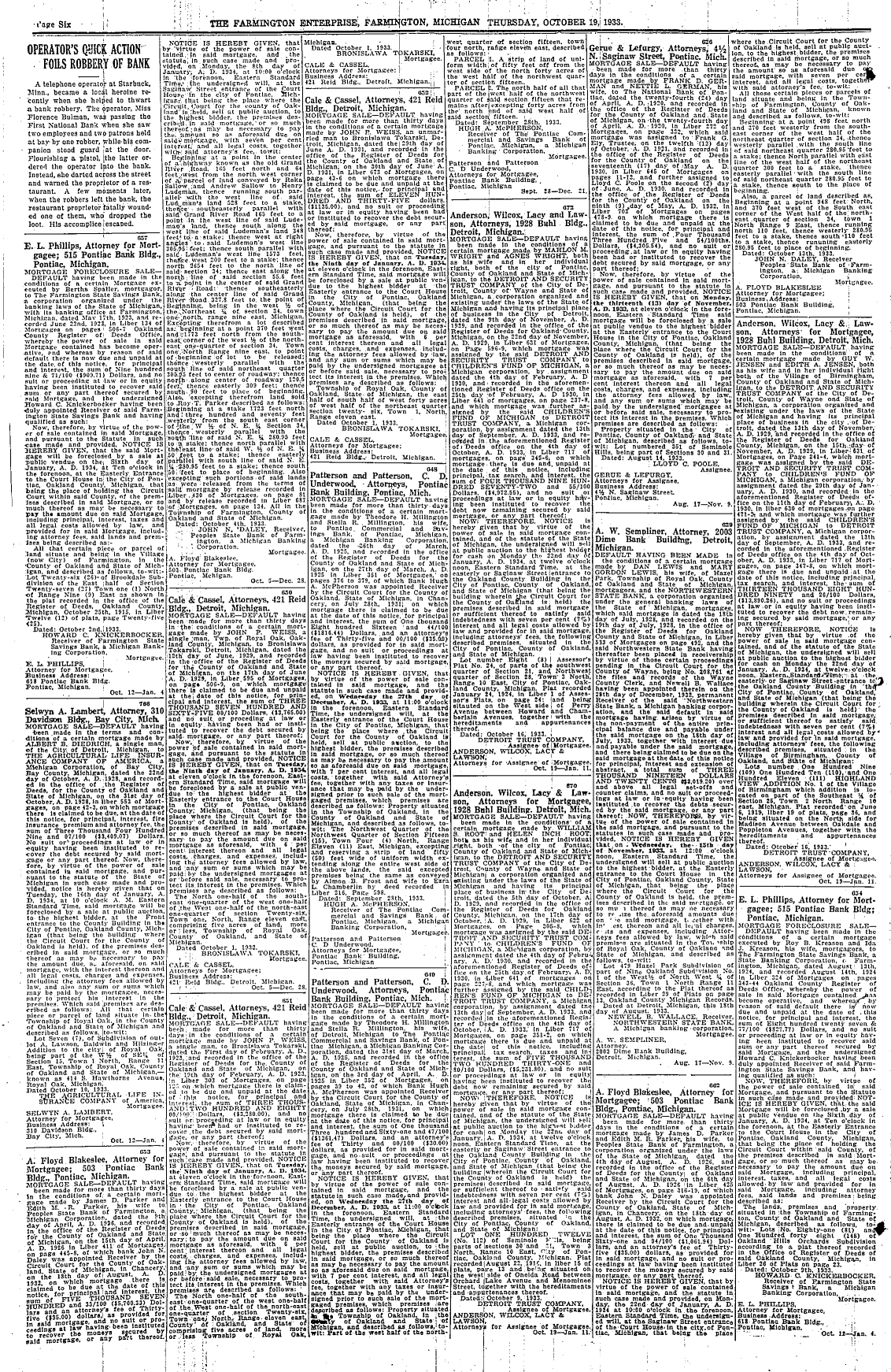 Farmington Observer et al, October 19, 1933.
