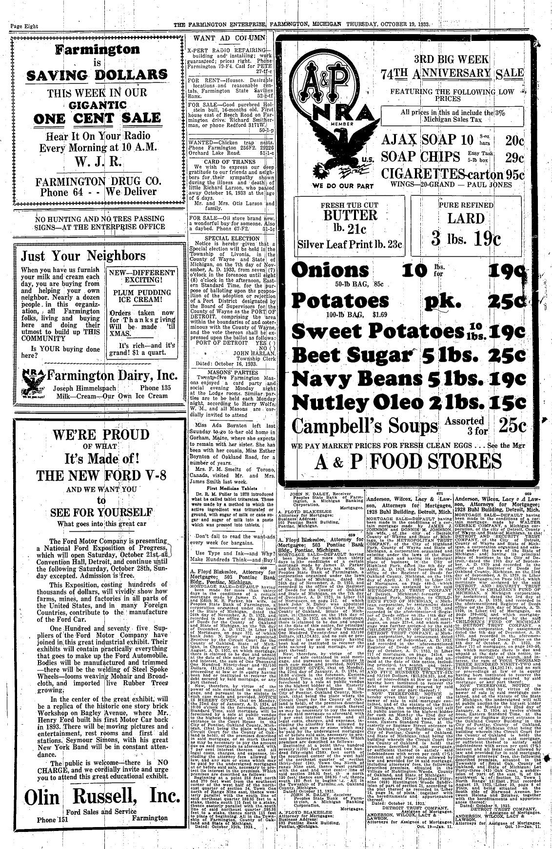Farmington Observer et al, October 19, 1933.