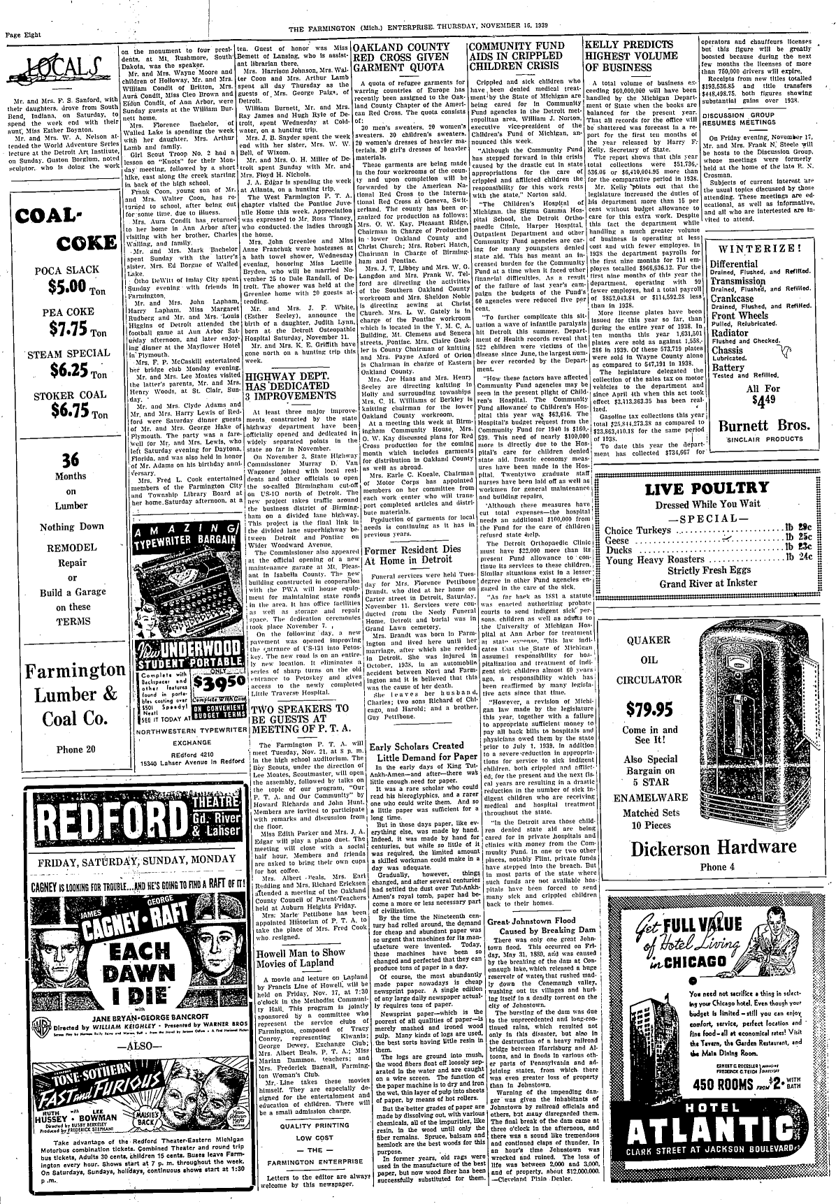 Farmington Observer et al, November 16, 1939.