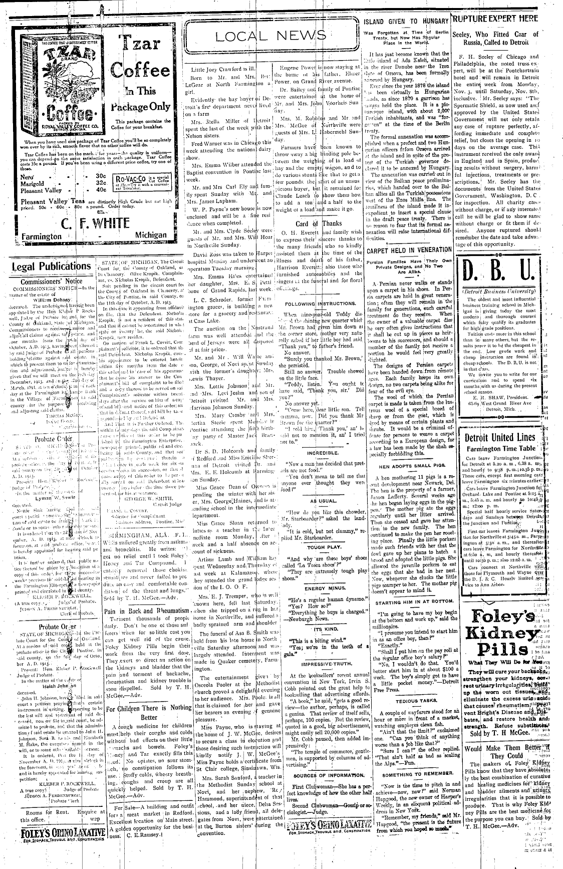 Farmington Observer et al, October 31, 1913.
