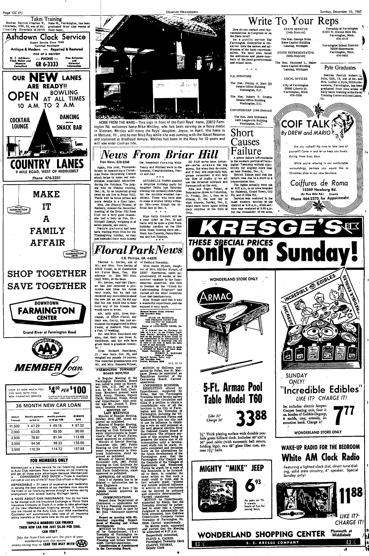 Farmington Observer et al, December 10, 1967.