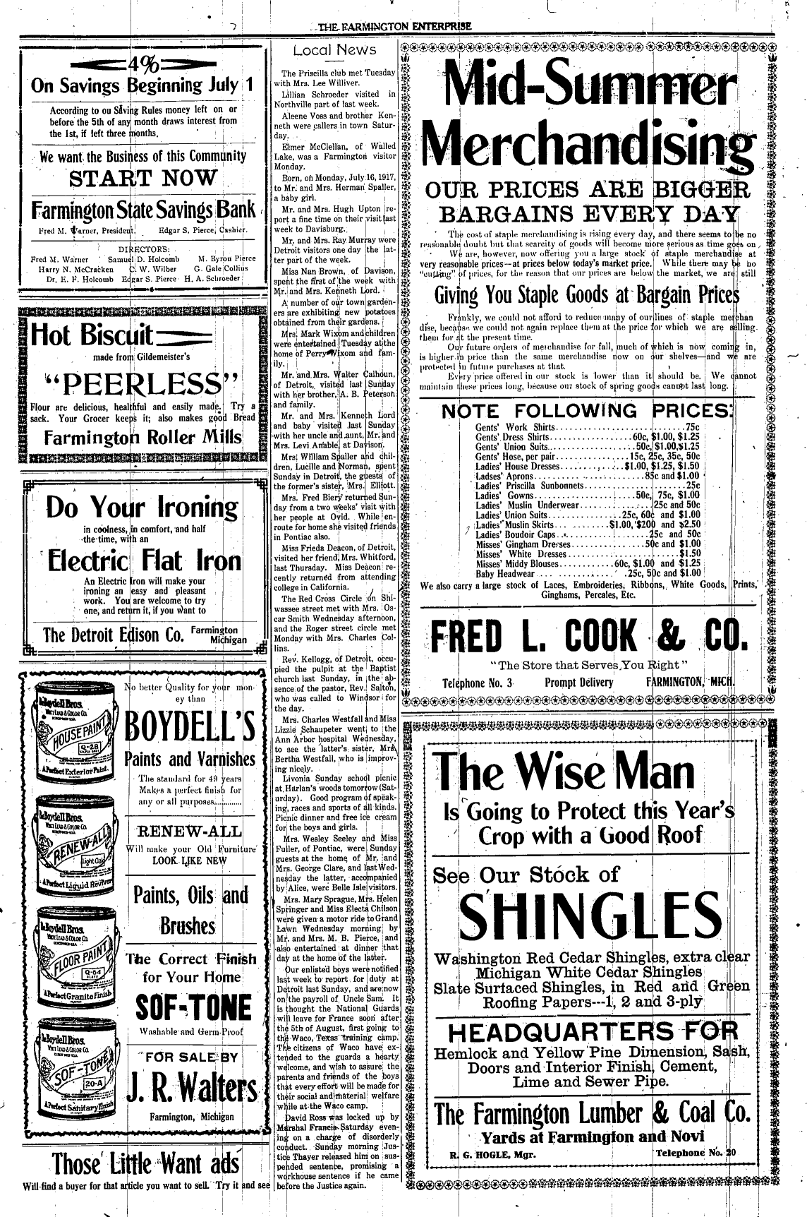 Farmington Observer et al, July 20, 1917.