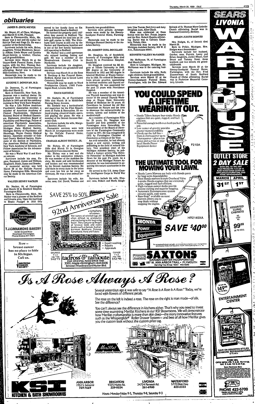 Farmington Observer et al, March 30, 1989.