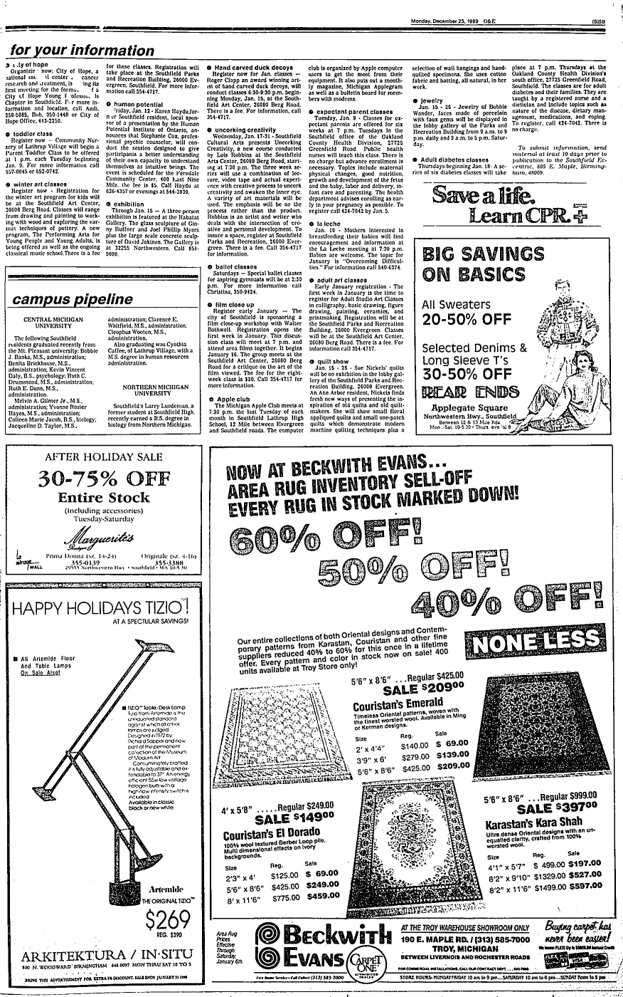 Farmington Observer et al, December 25, 1989.