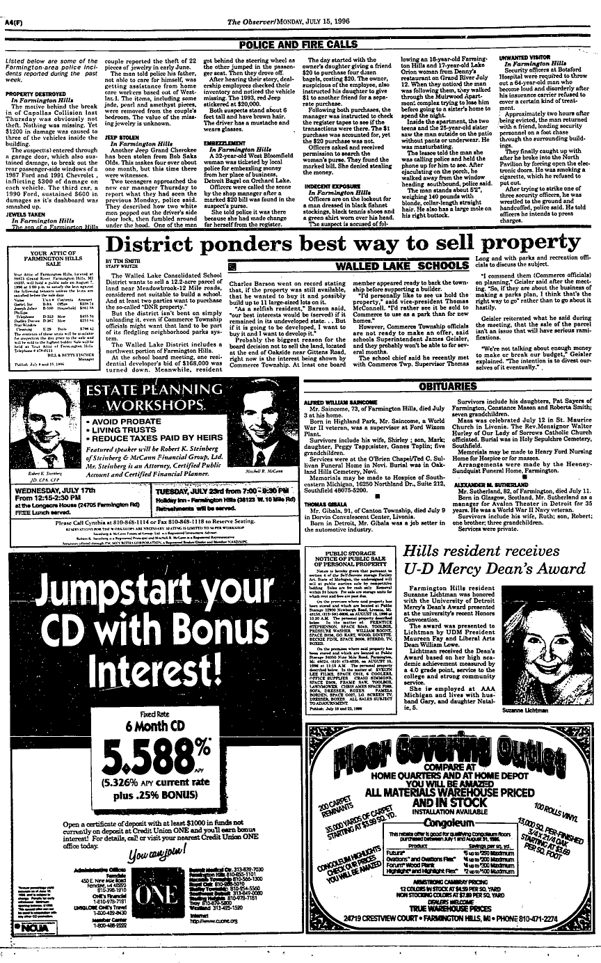 Farmington Observer et al, July 15, 1996.