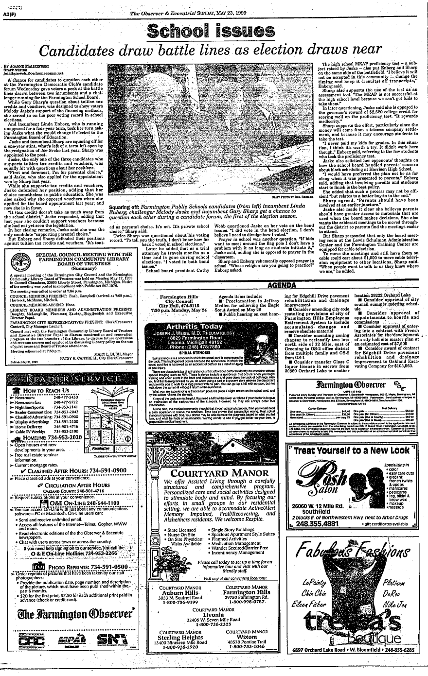 Farmington Observer et al, May 23, 1999.