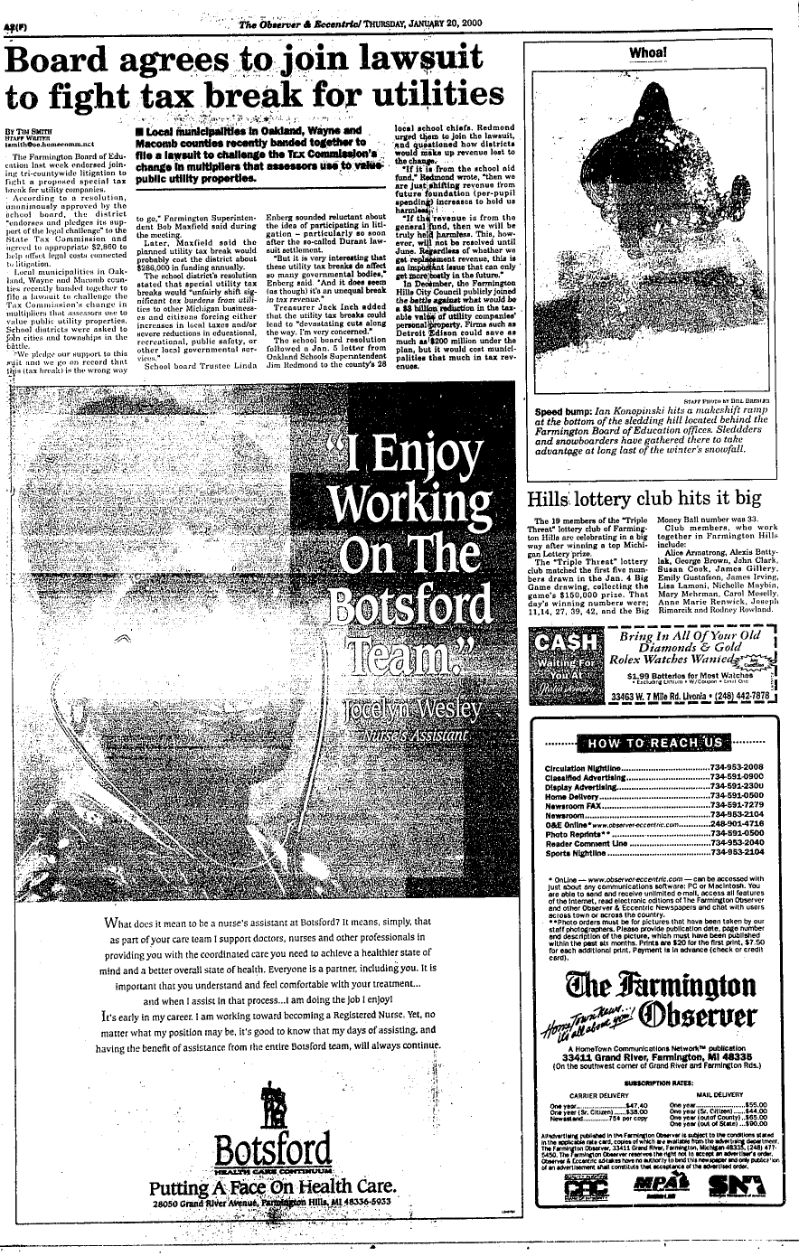 Farmington Observer et al, January 20, 2000.