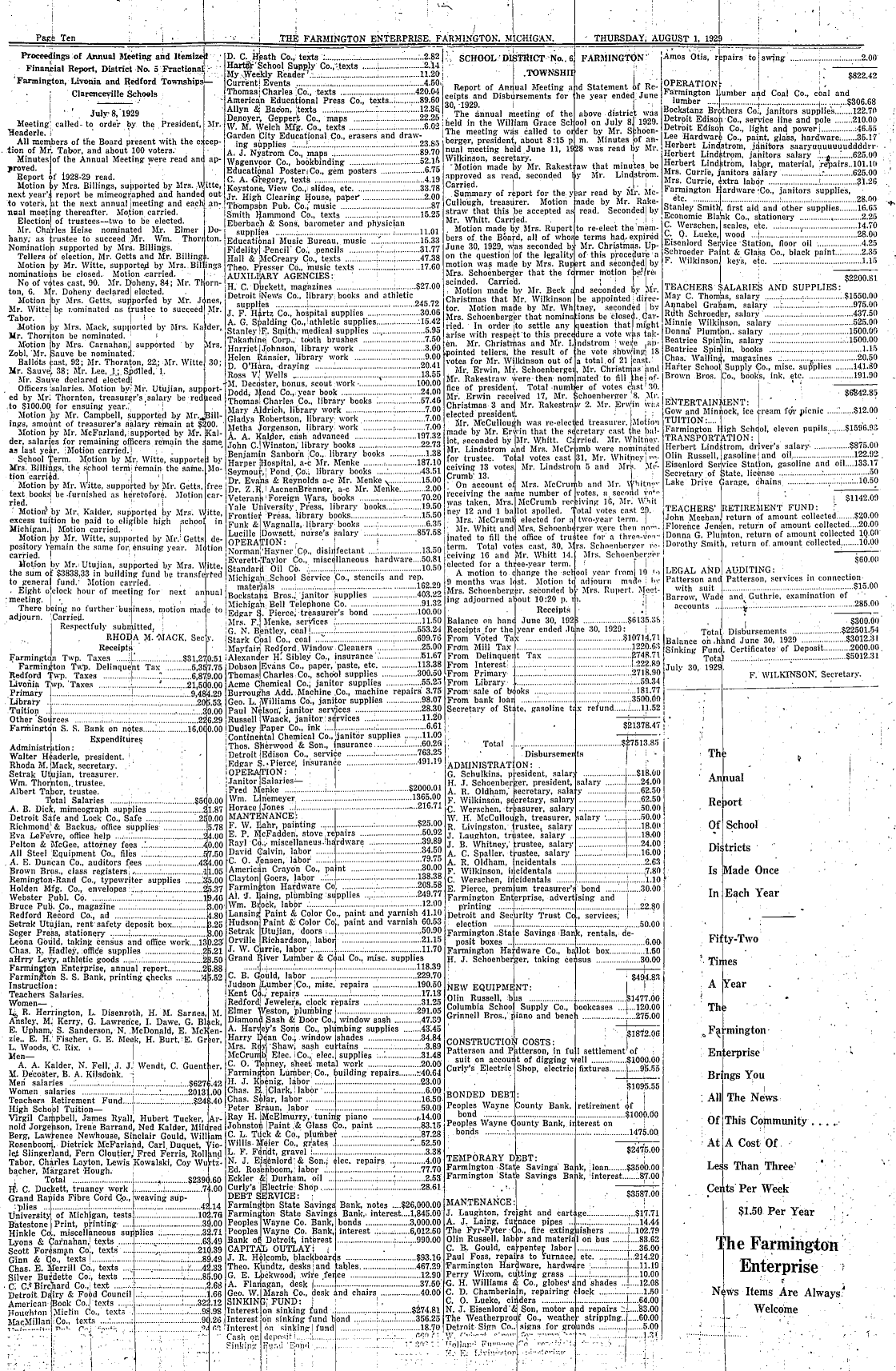Farmington Observer et al, August 01, 1929.