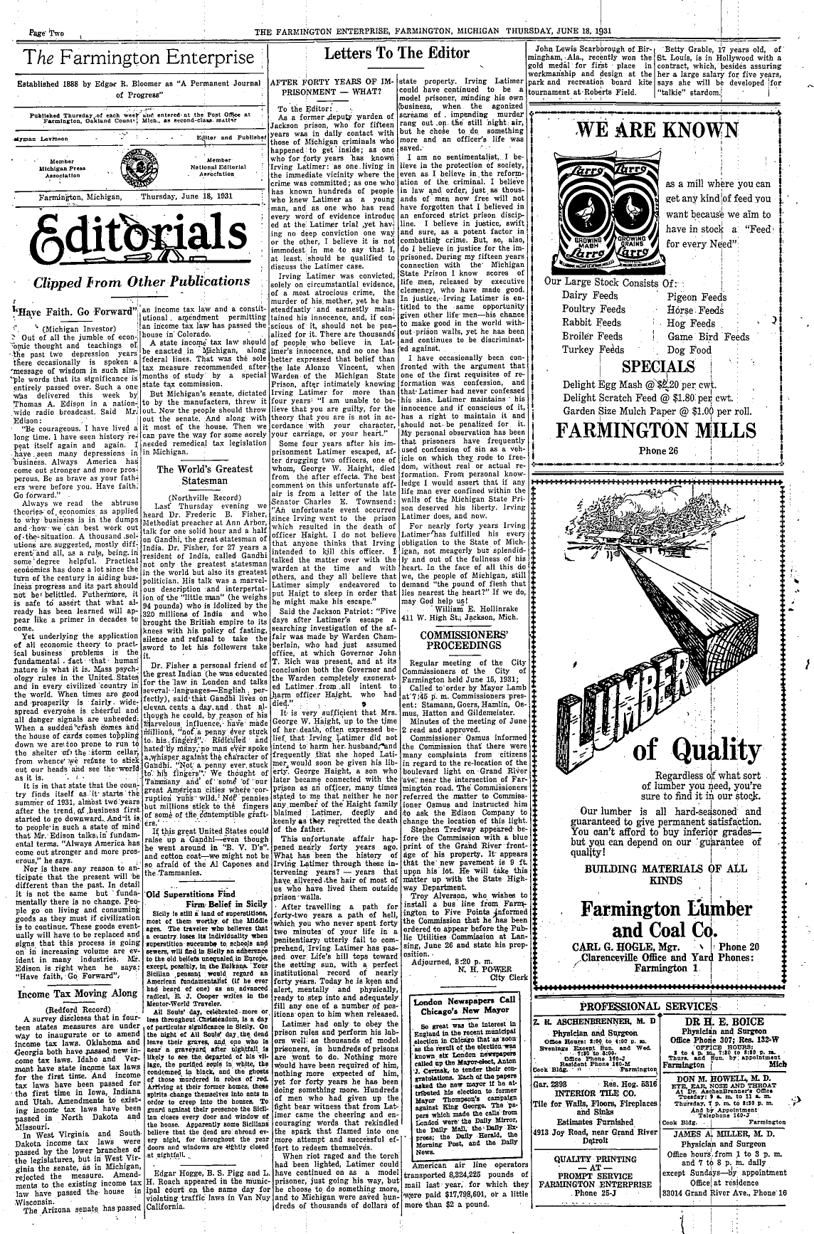 Farmington Observer et al, June 18, 1931.