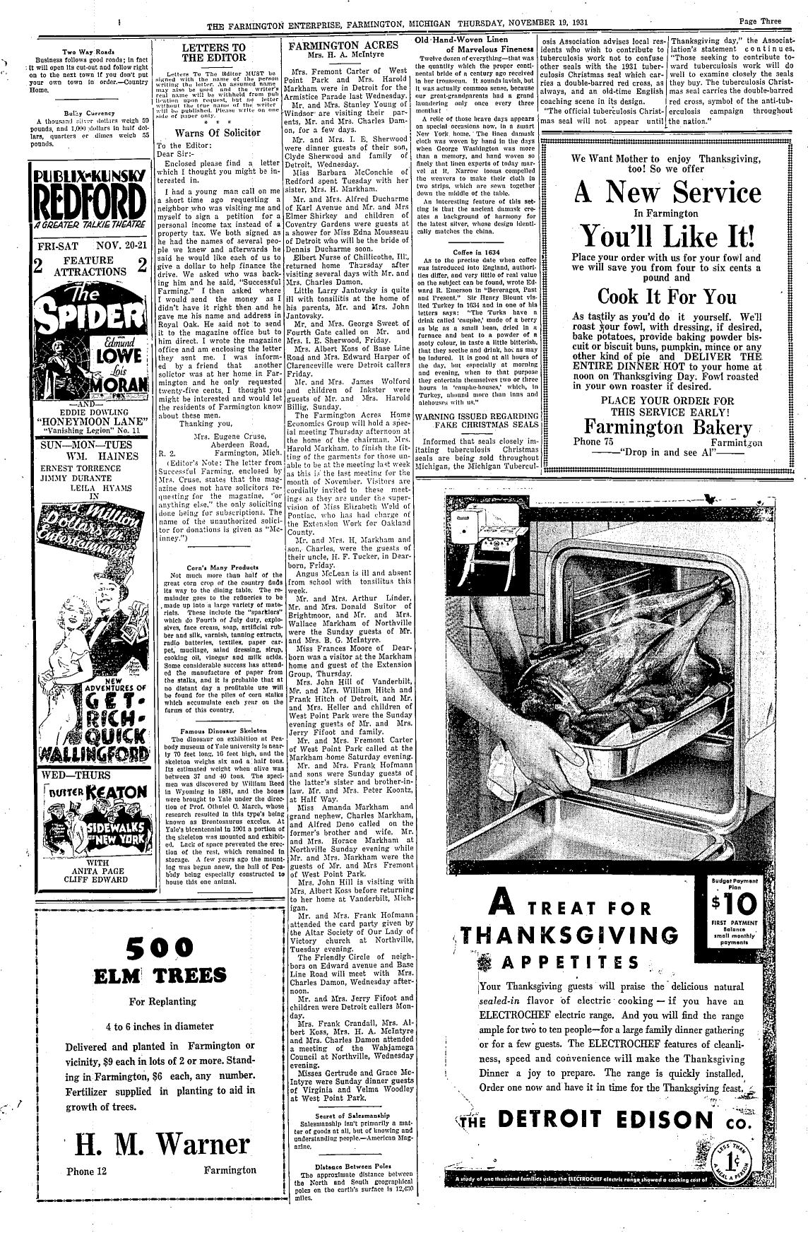 Farmington Observer et al, November 19, 1931.