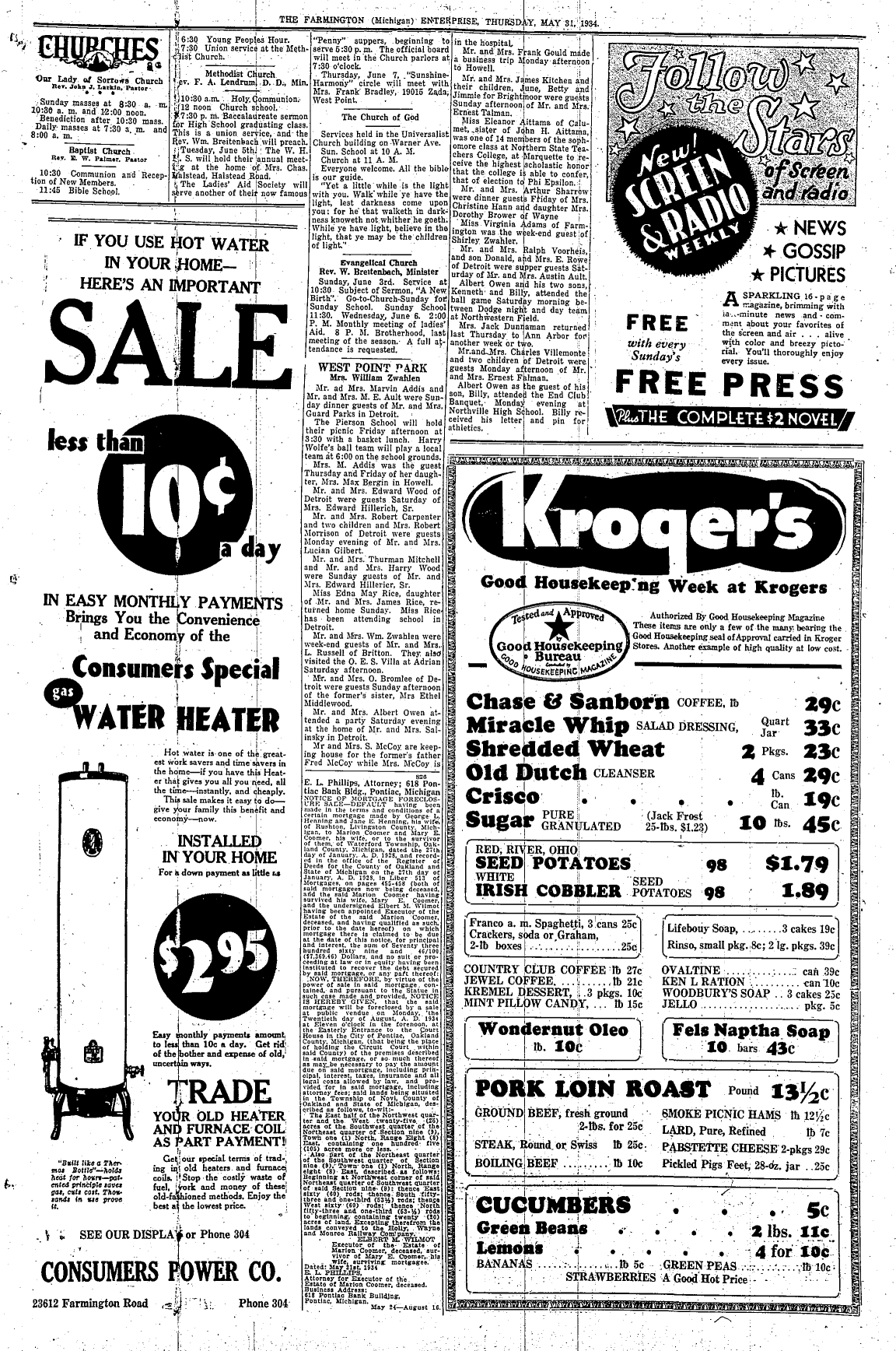 Farmington Observer et al, May 31, 1934.