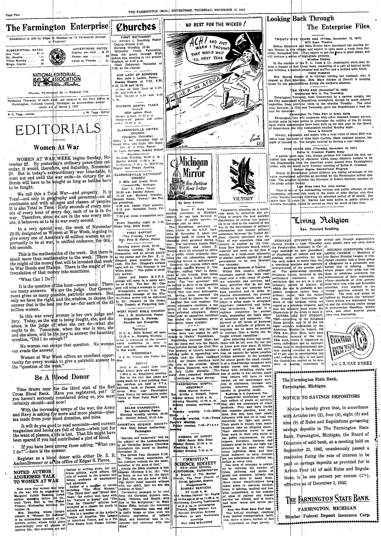 Farmington Observer et al, November 12, 1942.