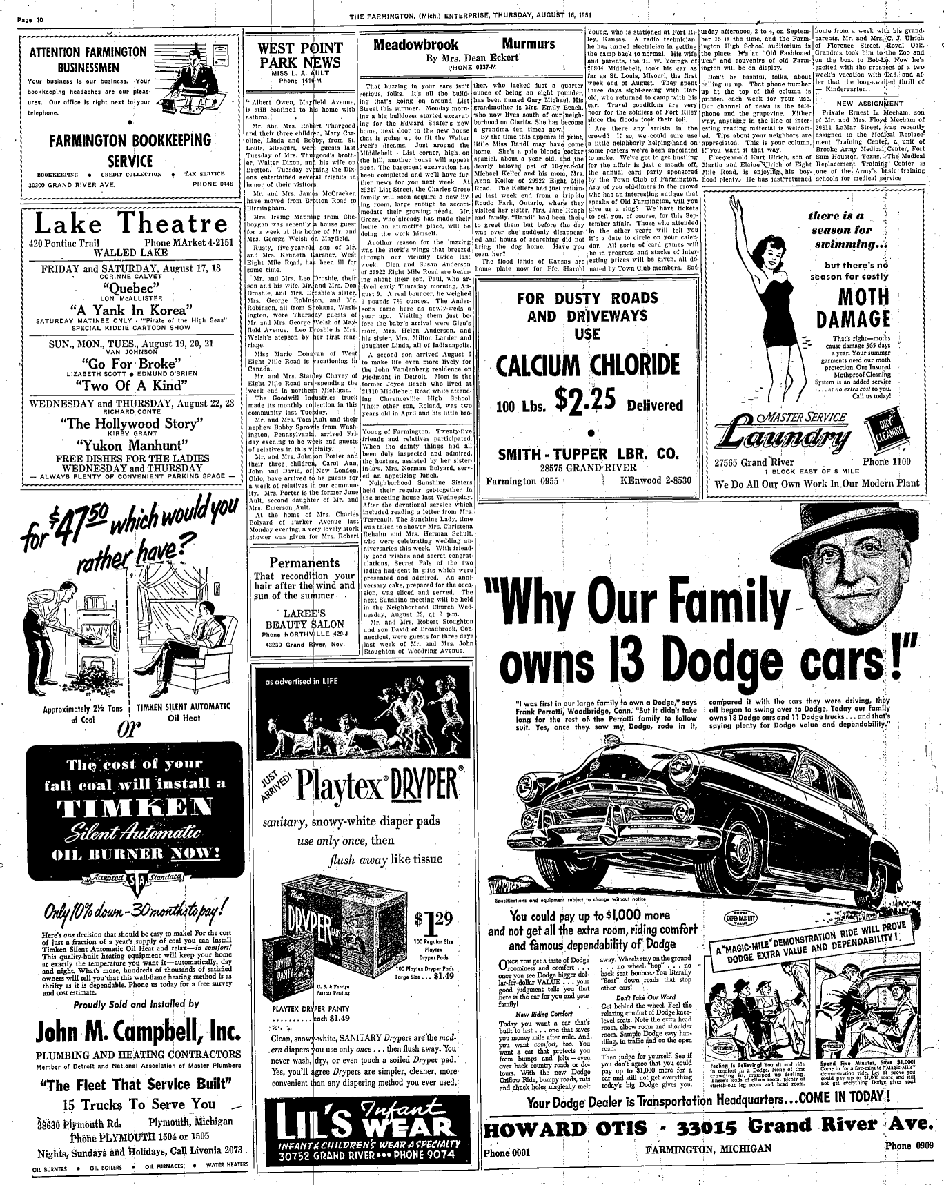Farmington Observer et al, August 16, 1951.